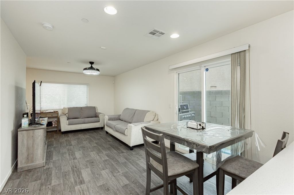 Welcome to 4170 San Cuervo Way ? a well-designed 3-bedroom, 2.5-bath home offering 1,106 sq ft of functional living space in a convenient Las Vegas location near Nellis Air Force Base. The open-concept living, dining, and kitchen area maximizes every square foot and feels bright and inviting, with a fresh coat of new paint on the first floor. The kitchen features ample cabinetry, generous counter space, and stainless steel appliances. Upstairs you'll find three bedrooms, including a primary suite with a private bath. This home includes a private 1-car garage and sits directly in front of guest parking for added convenience. Enjoy extra privacy with no rear neighbors and no neighbor on the left side. Low-maintenance yard and efficient layout offer comfort and easy living!